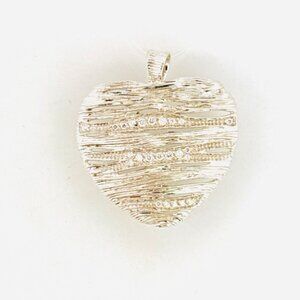 Elegant 925 Sterling Silver Heart Pendant w/ White Gems Unbranded Slide Closure