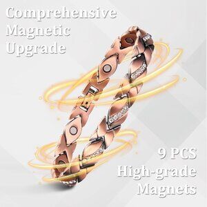 Features: This set includes a sleek, adjustable magnetic bracelet and a loving heart copper bangle, both crafted from high-quality pure copper. The magnets provide deep, targeted support all day long, making these pieces both stylish and functional. The open-type clasp allows for easy adjustment and a comfortable fit. The bracelet also comes with a handy sizing tool and instructions for at-home customization.
