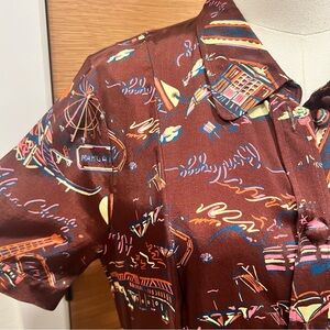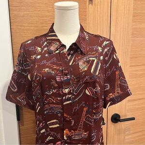 Details : Fantasy print, Classic collar, Short sleeves, Breast pocket, Button tab, Satin effect