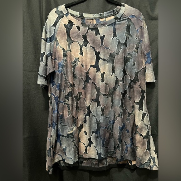 Discover elegance with this abstract pattern tunic, featuring a blend of blue, gray, and black hues. Perfect for any occasion.