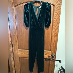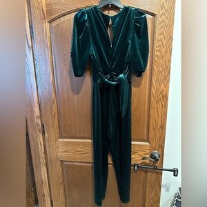 Elegant Adelyn Rae Velvet Jumpsuit in emerald Green
