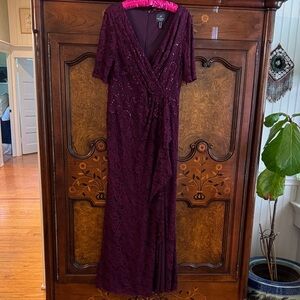 Elegant Adrienne Papel Burgundy Lace Evening Dress Size 10