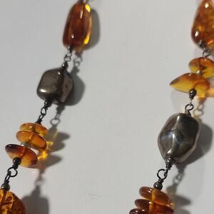 This stunning necklace features rich amber stones paired with sleek sterling silver accents. Perfect for adding a touch of elegance to any outfit.