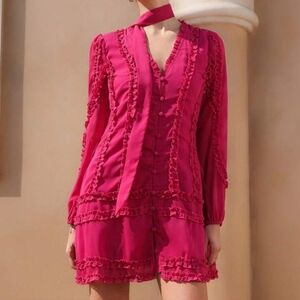Elegant And Graceful Resort Design V-Neck Splicing 3D Ruffle Trim High-Waist Wom