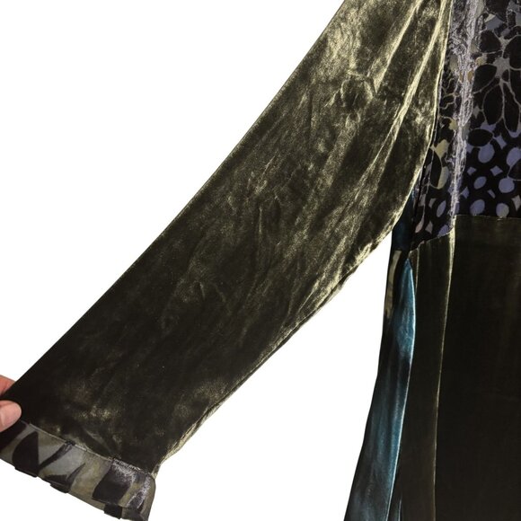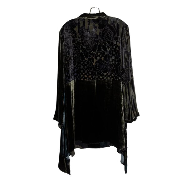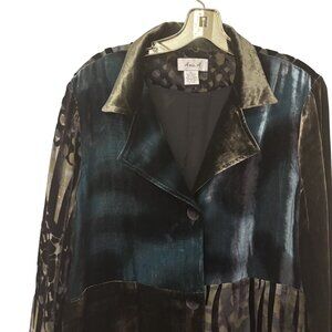 Elegant Anis.A Velvet & Silk Blend Asymmetrical Drape Jacket XL Black/Green