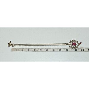 This antique-style jewelry set features a matching necklace and earrings adorned with red stones and delicate leaf details.