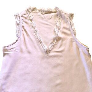 Elegant Apricot Womens Blouse Size Medium Sleeveless Lace Trim V-Neck