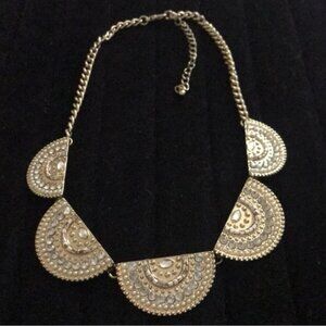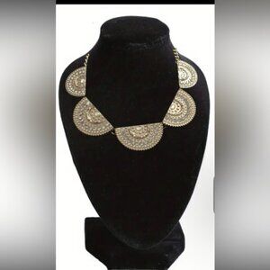 This stunning gold statement necklace adds a touch of elegance to any outfit. Perfect for special occasions or everyday wear.