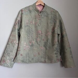 Beautiful Asian embroidered reversible jacket. Pink or green choice option to wear. Like new, no flaws. Size Medium. Relaxed fit. Gorgeous.