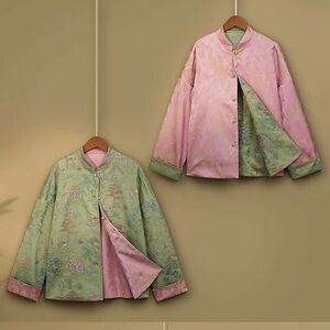 Elegant Asian Reversible Blazer Choice of Pink or Green EUC