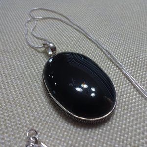 Elegant "BANDED ONYX" Handmade Sterling Pendant/Chain #213B
