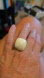 This elegant ring features an ivory acrylic stone set in a gold-tone band adorned with rhinestones that frame each side perfectly.