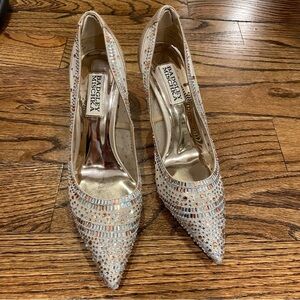 Elegant Badgley Mischka Beige Embellished Heels