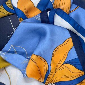 ✨ Elegant Bandana Square Scarf Luxurious BLUE ORANGE Silky Soft Satin Neck Wrap✨
