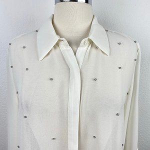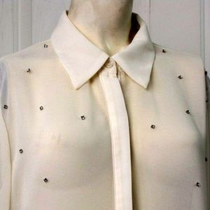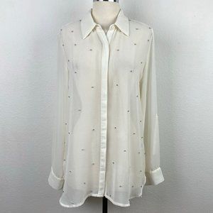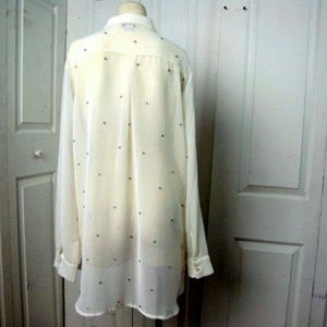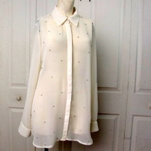 Bar III Sheer Ivory Long Blouse Rhinestone Lg.