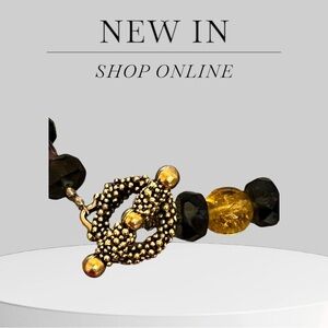 This stunning bracelet features a blend of black and gold beads, perfect for adding a touch of elegance to any outfit. The gold accents provide a luxurious finish.