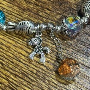 This stunning bracelet features a blend of blue and orange beads, complemented by silver accents. Perfect for adding a touch of elegance to any outfit.