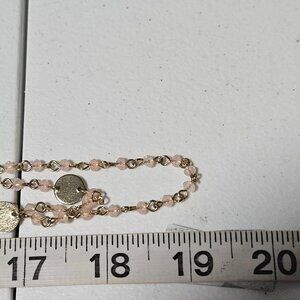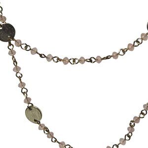 Elegant Beaded Gold Tone Necklace Pink Crystal Accent Coin Charms Formal Fashion