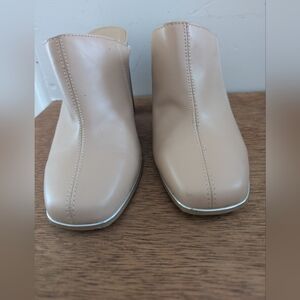 Step out in style with these elegant beige block heel mules. Perfect for any occasion, these shoes offer both comfort and sophistication.