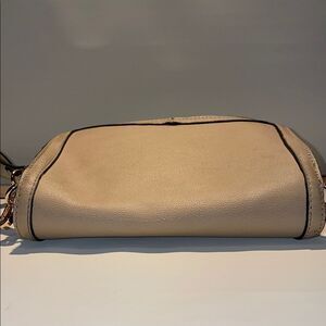 This elegant beige crossbody bag features a stylish buckle design, perfect for any occasion. Its neutral color complements any outfit, making it a versatile addition to your wardrobe. Made of faux leather material.