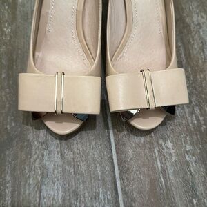 Step out in style with these elegant beige peep-toe heels. Featuring a chic bow accent, these shoes are perfect for any occasion. Elevate your wardrobe with this sophisticated design.