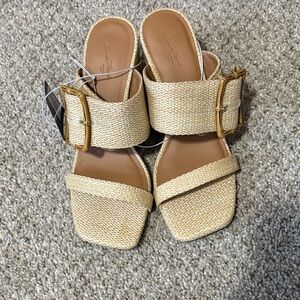 Elevate your style with these elegant beige sandals featuring a sophisticated buckle design. Perfect for any occasion.