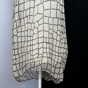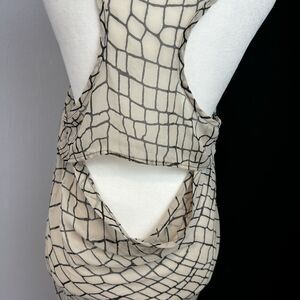 Elegant Beige Sheer Overlay Tank Top Geometric Pattern Flowy Lightweight S-M?