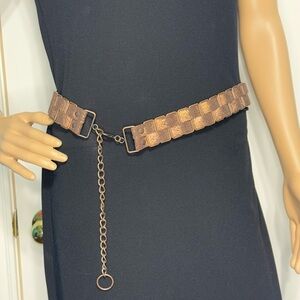 Elegant Belt metallic bronze crackled leather braided into copper tone chain Y2k