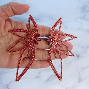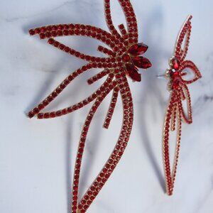 Elegant Big Wing Stud Red Earrings for Women Metallic and Rhinestone