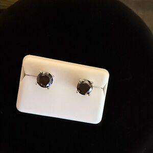 Chic black stud earrings with a sleek design. Perfect for any occasion. These are black moissanite and sterling silver earrings. 2CT.