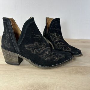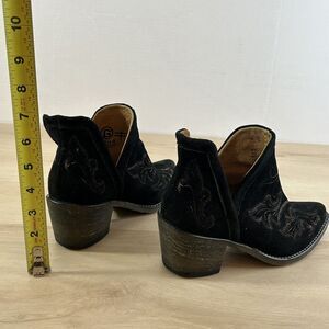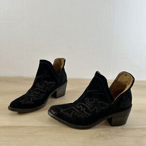 Step out in style with these elegant black ankle boots. Featuring intricate stitching, these boots are perfect for any occasion. The brand is circle G. Very similar as my Ariats. They are real sued leather and beautifully stitched