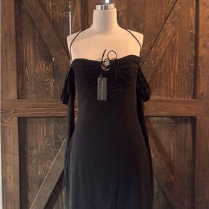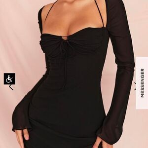 New months material stretches, This elegant black dress features long sleeves and a flattering fit, perfect for any occasion.