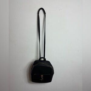 Chic and versatile black backpack featuring a stylish gold charm. Ideal for daily adventures with a touch of elegance.