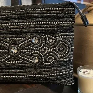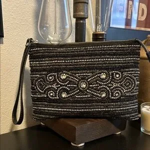 Elegant Black Beaded Clutch