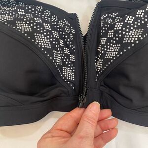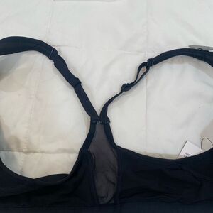 This sophisticated black bikini set showcases a bralette-style top adorned with a delicate lace trim, complemented by classic side-tie bottoms for a customizable fit. The contrasting trim adds a touch of elegance, making it an ideal choice for a stylish swimwear ensemble.