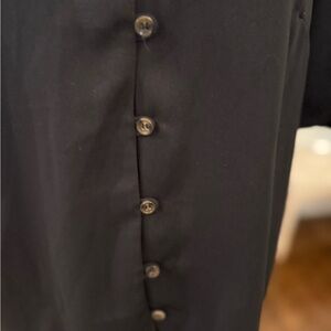 This elegant black button-up top is perfect for any occasion. Featuring a classic design with a modern twist, it offers both style and comfort. Ideal for pairing with your favorite jeans or a chic skirt. **UK SIZE 12 converts to US 10
