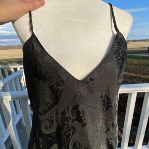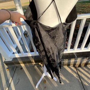 This elegant black chemise offers a sophisticated look with its intricate design. Perfect for a comfortable and stylish night in.