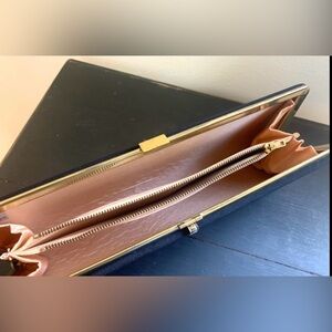 Sleek and sophisticated black clutch perfect for any occasion. Features a minimalist design with a secure closure.