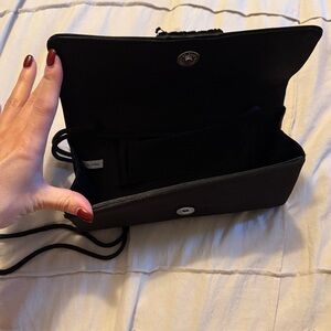 Chic black clutch featuring a stylish beaded accent. Perfect for evening events.