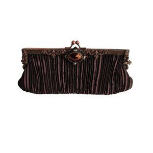This elegant black clutch features exquisite ornate detailing, perfect for adding a touch of sophistication to any outfit. Ideal for evening events and special occasions.
