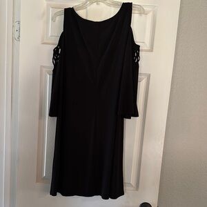 This elegant black cold shoulder dress is perfect for any occasion. Its sleek design and comfortable fit make it a must-have in your wardrobe.