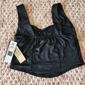 This chic black crop top is perfect for any occasion. Its sleek design offers a flattering fit, making it a versatile addition to your wardrobe.
