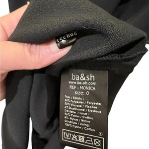 This elegant black dress is perfect for any occasion. Its sleek design and classic color make it a versatile addition to your wardrobe. Bash is a chic French brand. Never worn. Size 0.