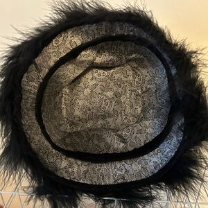 Stay warm and stylish with this elegant black feather hat. Perfect for adding a touch of luxury to any outfit. Vintage 50’s . I think it’s ostrich feathers. Not sure. It’s feathers