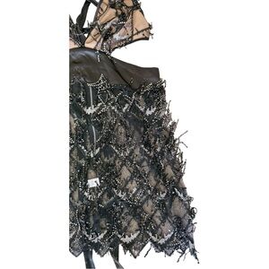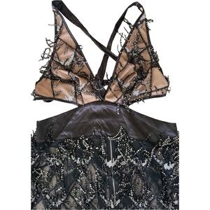 • Design Features:• Crisscross strap bodice with sheer overlay