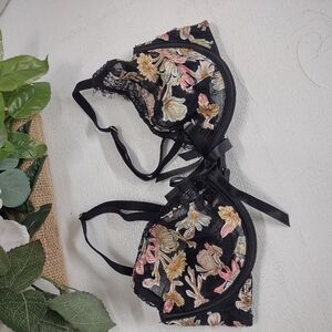 Experience elegance with this black floral lace bra, perfect for adding a touch of sophistication to your intimate collection.used excellent condition