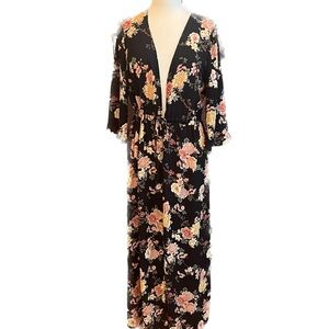 Elegant Black Floral Robe / Topper