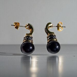 Elegant Black Fuax Pearl and Gold Silver Tone Stud Earrings