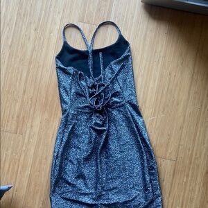 Shine in this elegant black glitter dress, perfect for any special occasion. The shimmering fabric adds a touch of glamour to your look.