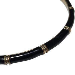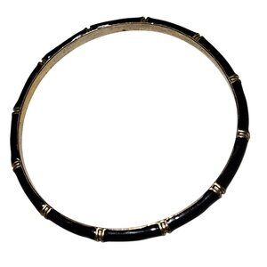 This elegant bangle bracelet features a bamboo-style design with a rich black and gold-tone finish. It's lightweight yet durable, making it a sophisticated accessory suitable for formal settings or everyday wear.